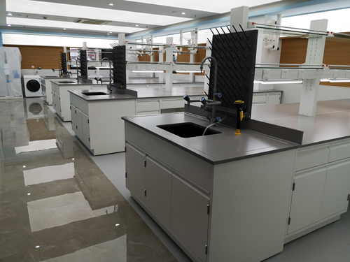 2.全鋼試劑架:采用1.0-1.2mm厚(鍍鋅鋼板/冷軋鋼板/電解鋼板/不銹鋼板),表面經過高溫環氧樹脂靜電粉末噴涂,層板為基材折彎焊接成型,可任意調節位置,可配載中央吊柜等其他特殊儀器裝備功能,能布置氣體管路、電源、水源相關配套設施;多功能線槽具有導線、擋水、多功能應用、整體美觀、使用安全等功能特點。